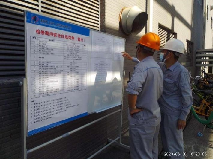 檢修現(xiàn)場作業(yè)安全監(jiān)護(hù)人員高培寬、林周斌、黃濟(jì)林、陳海柳等認(rèn)真監(jiān)護(hù)。